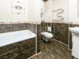 В санузле пол и стены выложены кафелем, установлен водонагреватель.