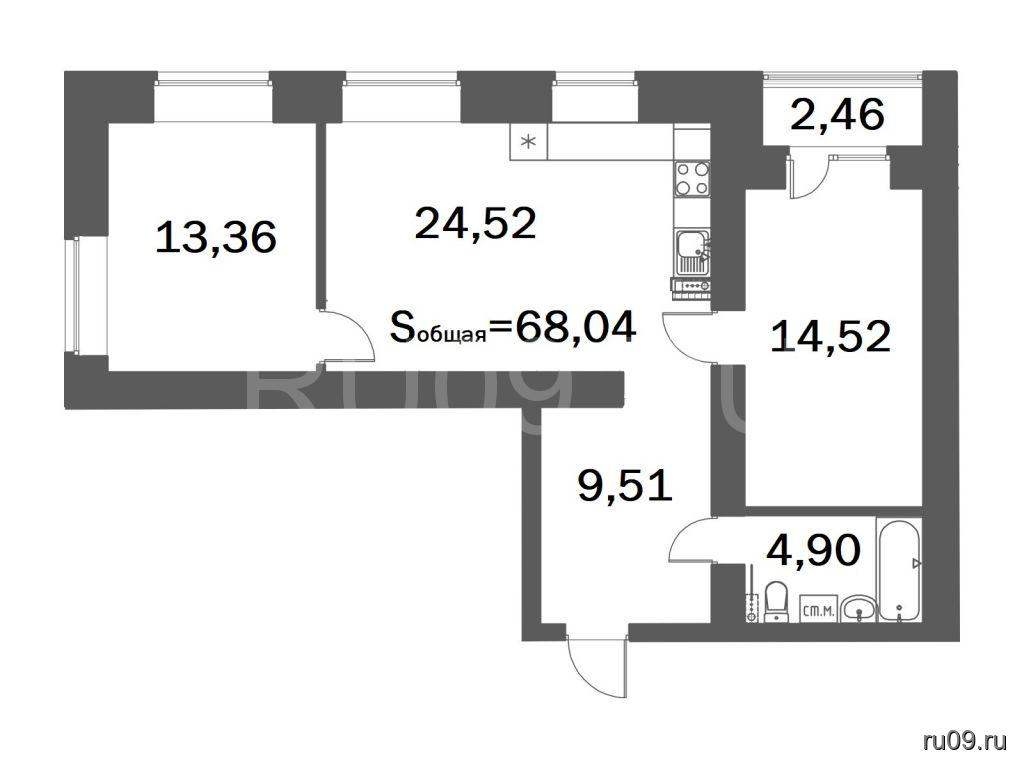 Общая площадь  68.040 кв.м