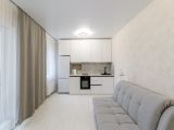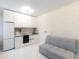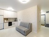 Красивая атмосферная квартира студия в новом доме. Уютная, солнечная и светлая! Шикарные панорамные балконные окна. Выполнен хороший капитальный и стильный ремонт. Выровнены стены(дорогие качественные обои), полы(ламинат Quick Step), плитка Kerama Marazzi, потолки натяжные в квартире и на лоджии. В коридоре установлен шкаф-купе.