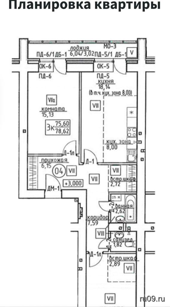 Общая площадь  78.62 кв.м